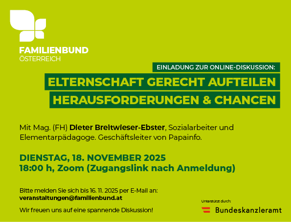 Elternschaft gerecht aufteilen; Herausforderungen & Chancen (Online-Diskussion - Bundeskanzleramt)