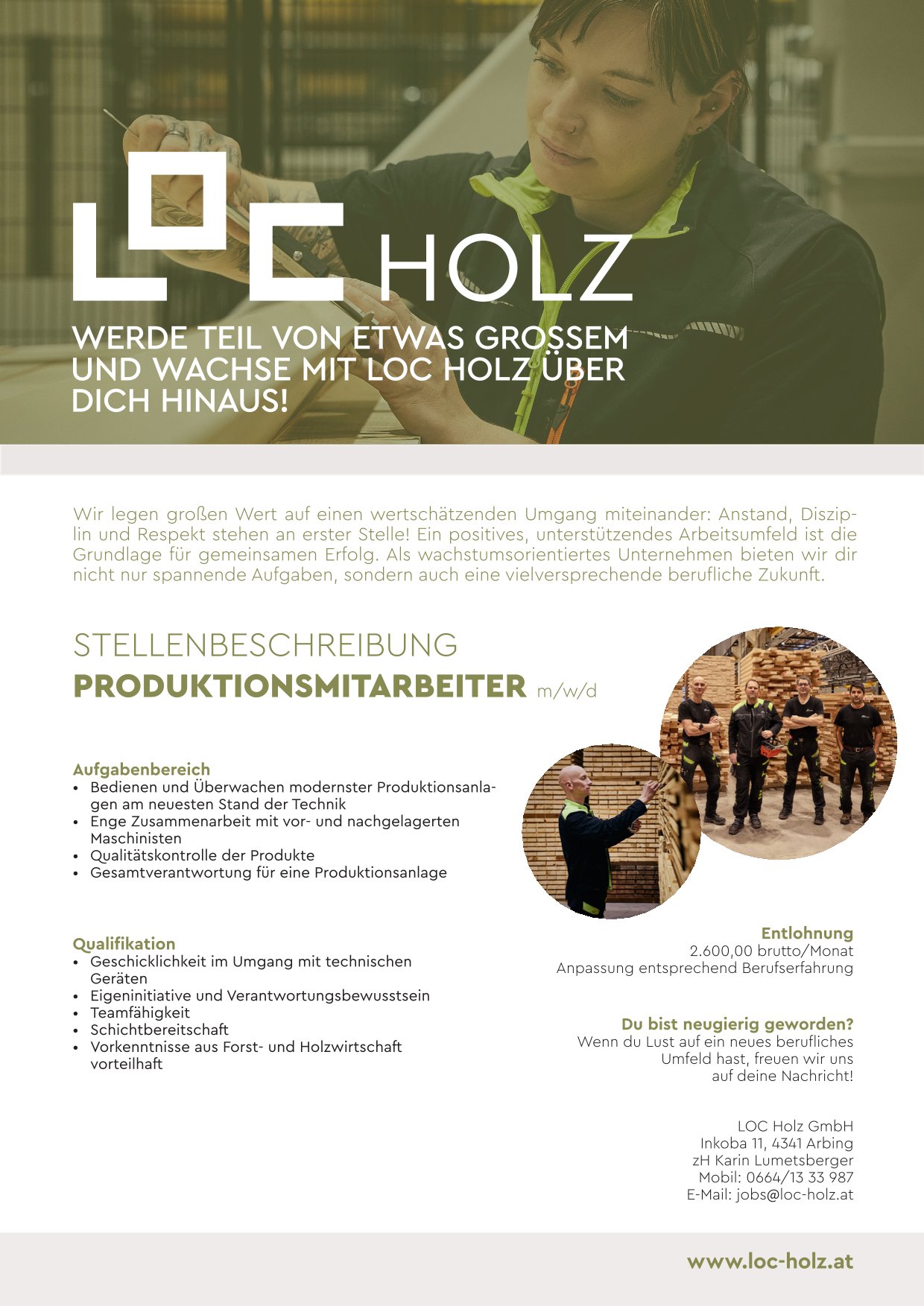 Stellenausschreibung - Produktionsmitarbeiter LOC Holz