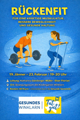 | Mo. | 19. - 23. | Rückenfit - für eine kräftige Muskulatur, bessere Beweglichkeit u. gesunde Haltung |