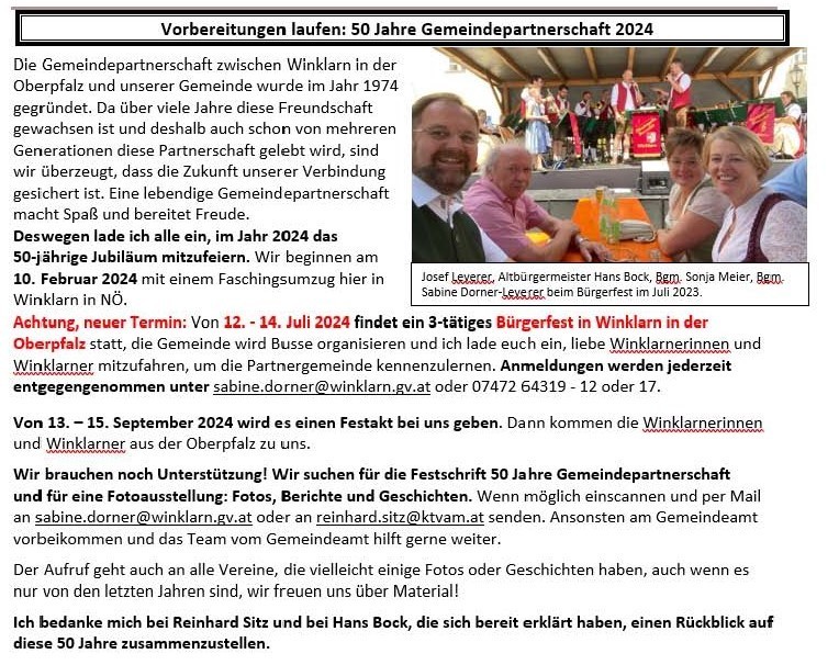50 Jahre Partnergemeinde Winklarn/NÖ mit Winklarn/Oberpfalz